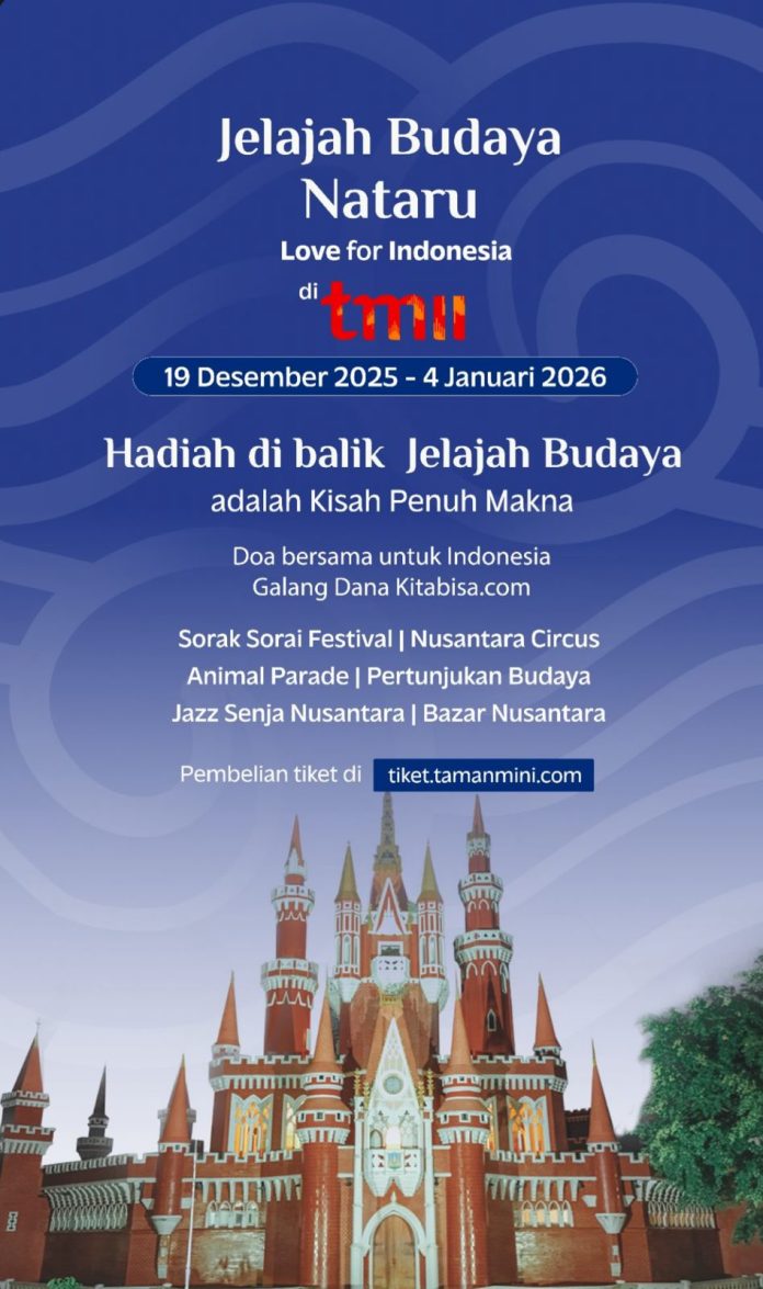 PETISI BRAWIJAYA MEDIA, JAKARTA – Taman Mini Indonesia Indah (TMII) kembali menjadi magnet wisata utama ibu kota dengan menghadirkan rangkaian acara budaya dan hiburan spektakuler dalam menyambut libur Natal 2025 dan Tahun Baru 2026 (Nataru). Mengusung tema “Hadiah dari Jelajah Budaya adalah Kisah Penuh Makna”, TMII menyuguhkan pengalaman multisensori yang menggabungkan seni, budaya, dan teknologi modern.