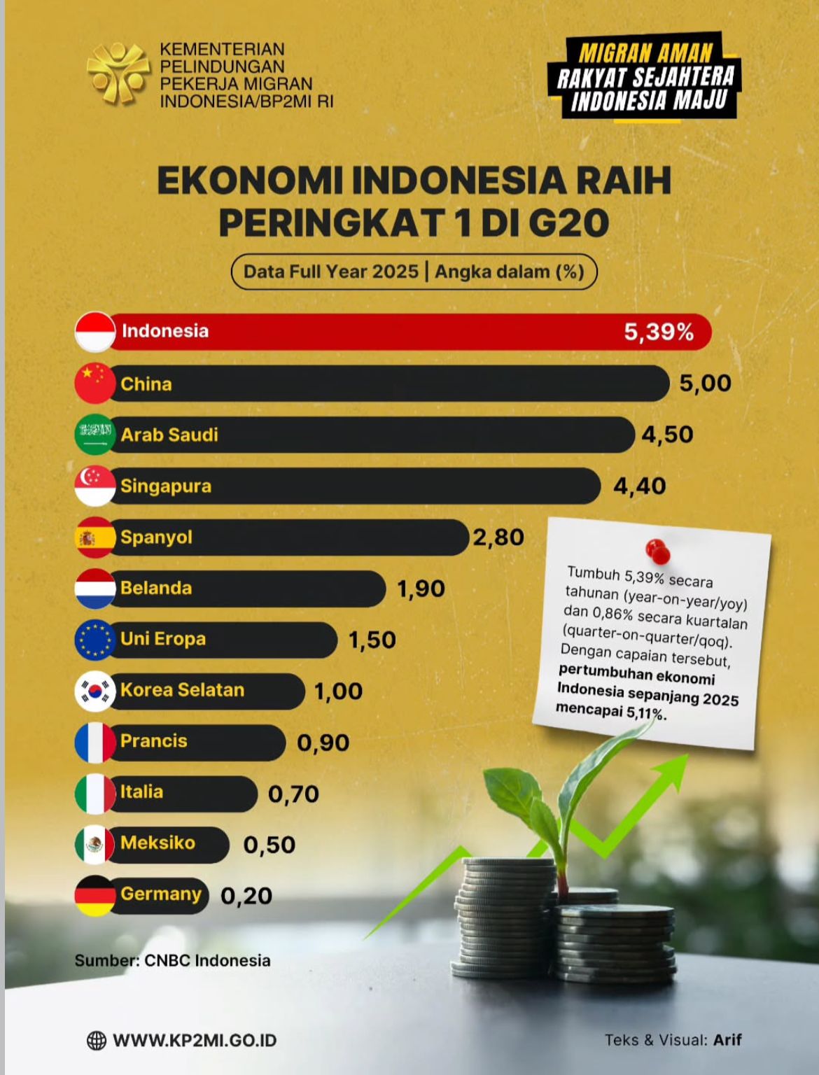 PETISI BRAWIJAYA MEDIA, JAKARTA – Ekonomi Indonesia kembali mencetak prestasi gemilang di tengah tantangan global. Data resmi terbaru menunjukkan bahwa perekonomian RI mencatat pertumbuhan menarik sepanjang 2025, menjadikannya salah satu ekonomi dengan pertumbuhan tertinggi di antara anggota Group of Twenty (G20), melampaui raksasa ekonomi seperti Tiongkok dan Arab Saudi.