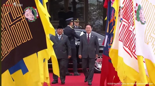 Dipantau melalui siaran langsung Sekretariat Presiden dari Jakarta, Rabu, setibanya di halaman depan Blue House, Prabowo disambut hangat oleh Presiden Lee dengan jabat tangan dan pelukan singkat sebagai simbol kedekatan hubungan kedua negara.
