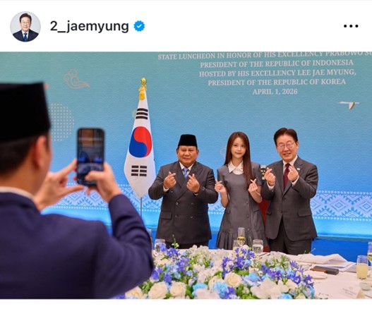 Momen itu sempat diabadikan dalam unggahan Instagram resmi Presiden Korea Selatan, Lee Jae Myung, pada Kamis, (2/4/2026). Dalam foto, Prabowo dan Lee Jae Myung mengapit Carmen. Ketiganya pun kompak melakukan simbol jari hati (finger heart), simbol khas budaya pop Korea yang biasa digunakan para idola K-pop untuk mengekspresikan kasih kepada penggemar.